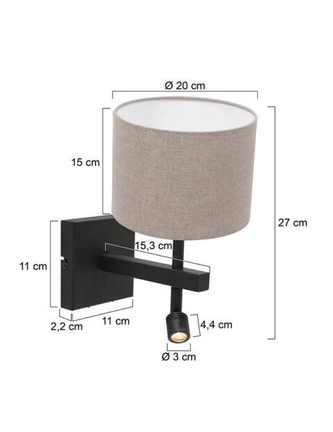 Les deux sources lumineuses peuvent être allumées et éteintes séparément via les deux interrupteurs sur la plaque murale. La lampe est fournie avec un abat-jour en lin gris qui offre une diffusion de lumière chaude et diffuse. Parfait comme lampe de chevet ou lampe murale dans la salle à manger, le salon, la chambre ou le bureau (à domicile). Comprend une garantie fabricant de 2 ans.