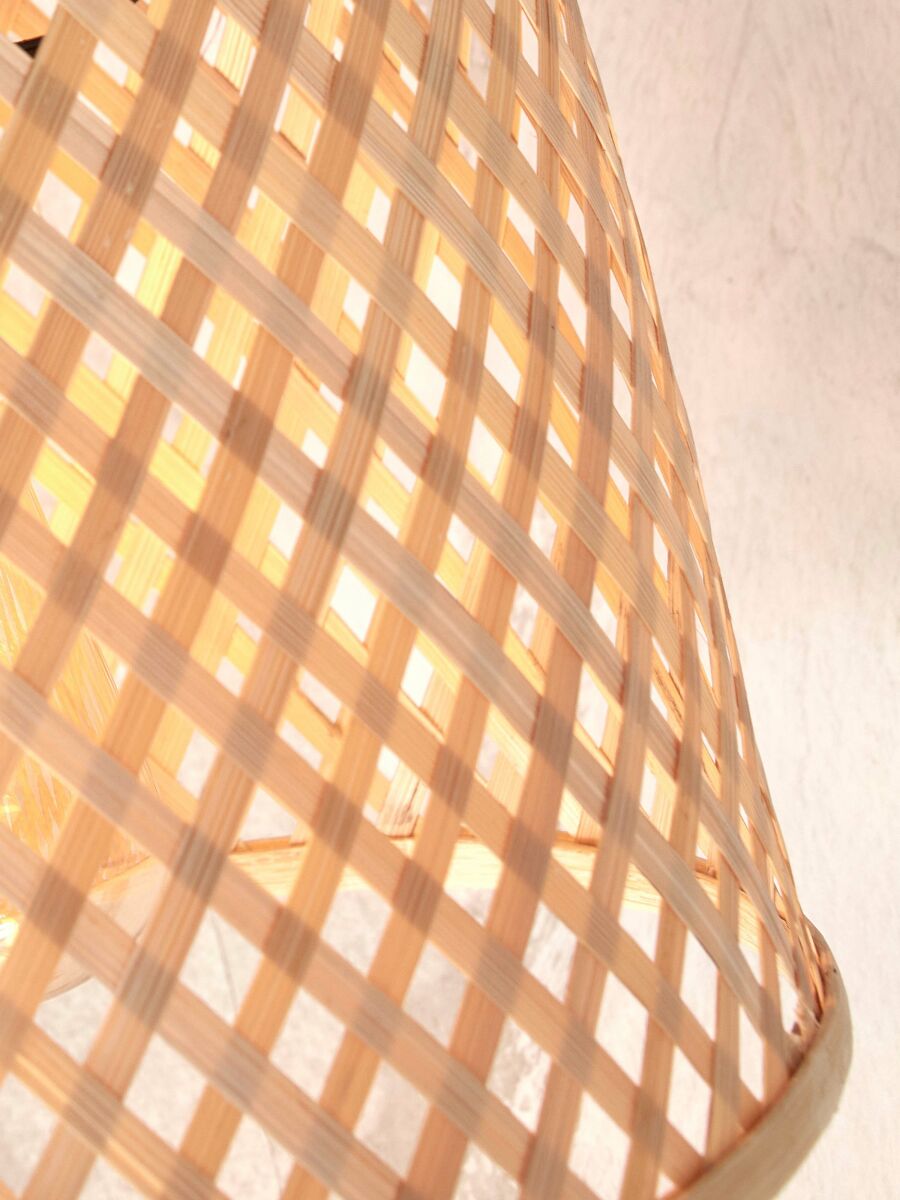 Lampe de table en bambou aux teintes naturelles, style bohème, idéale pour la salle à manger, le bureau à domicile, la chambre ou le salon. Équipée d’une douille E14 et résistante à la poussière (IP20). Ajoutez une atmosphère chaleureuse et rustique à votre intérieur. La couleur naturelle du bambou crée une ambiance sereine, parfaite pour instaurer une ambiance détendue.