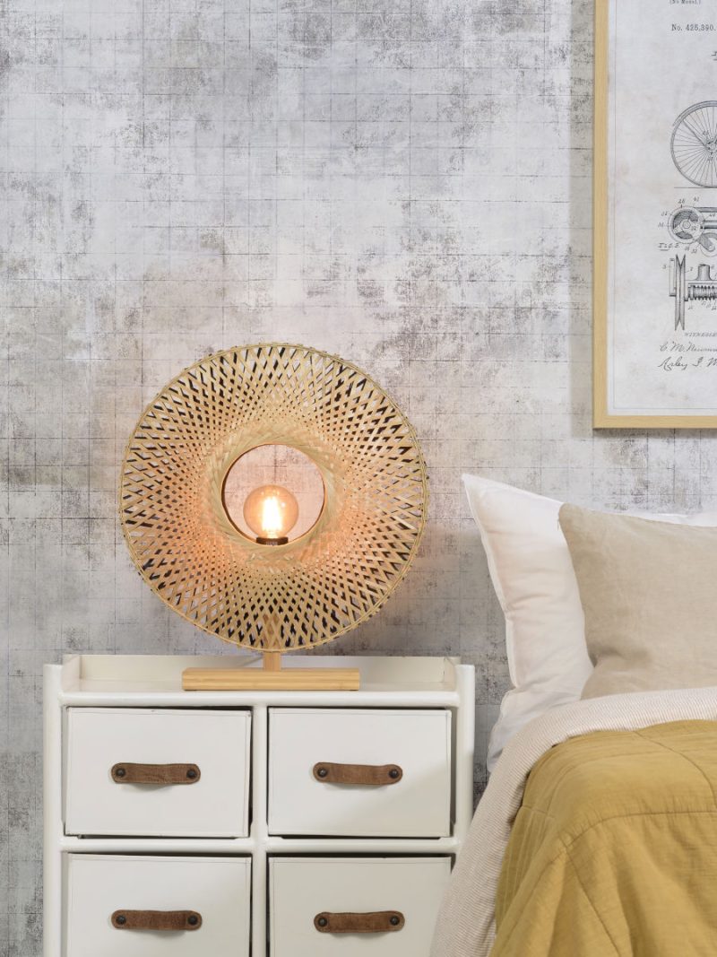 Lampe de table bohème en bambou naturel et noir, idéale pour la salle à manger, la chambre ou le salon. Équipée d’un petit culot E14 et résistante à la poussière (IP20). Ajoutez une touche exotique et élégante à votre intérieur. Cette lampe crée une atmosphère chaleureuse et accueillante.