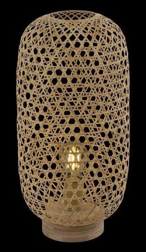 Pure nature ! L’abat-jour de cette lampe de table est fabriqué en treillis de bambou, permettant à la lumière de se diffuser dans l’environnement. La lampe avec un raccord E27 est également visible. Cela permet d’opter pour une source lumineuse décorative en alternative. Avec une ampoule LED, vous garantissez encore plus de durabilité. Avec une hauteur de 46 cm, cette lampe est un accessoire génial pour la maison.