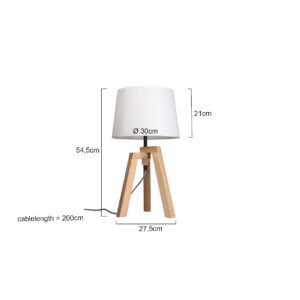 Lampe de table rustique avec trépied de la série Sabi, parfaite pour une ambiance naturelle et chaleureuse dans votre intérieur. La combinaison d’un cadre en bois et d’un abat-jour en tissu blanc de 30 cm de diamètre et 21 cm de haut crée un tout élégant. Convient aux sources lumineuses E27 jusqu’à 40 watts et équipée d’un cordon de 195 cm avec un interrupteur marche/arrêt. Garantie fabricant de deux ans incluse.