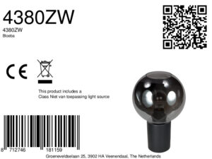 Le Bloeba 4380ZW est une lampe de table élégante avec un abat-jour en verre fumé rond de 20 cm de large et 16,6 cm de haut. L’abat-jour soufflé à la bouche filtre la lumière de manière chaleureuse, créant une ambiance accueillante.
