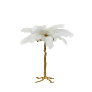 Lampe de table classique dorée avec des plumes d’autruche blanches Light & Living Feather