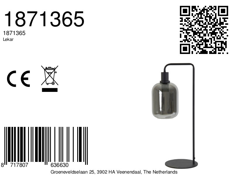 Lampe de table élégante en verre fumé Light & Living Lekar