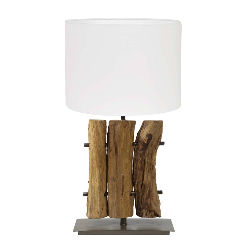 Lampe de table en bois avec abat-jour blanc Light & Living Gabrovo