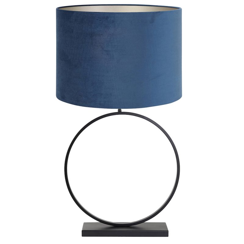Lampe de table en bois avec abat-jour bleu en velours Light & Living Liva