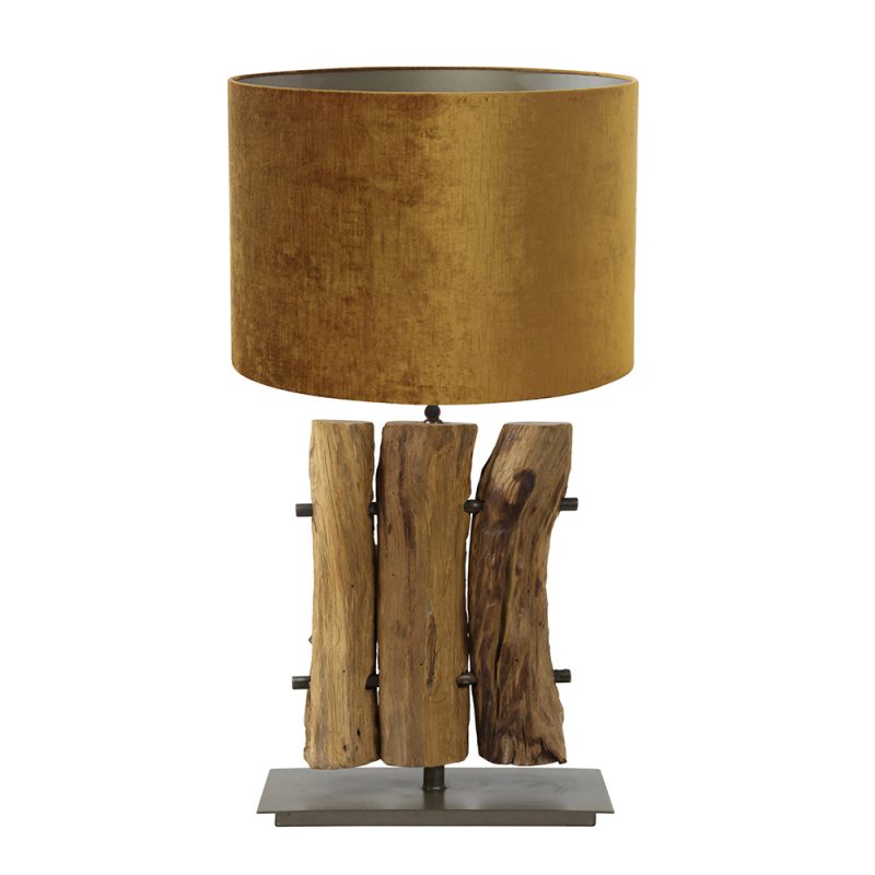 Lampe de table en bois avec abat-jour doré Light & Living Gabrovo