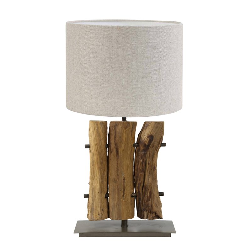 Lampe de table en bois avec abat-jour gris en tissu Light & Living Gabrovo