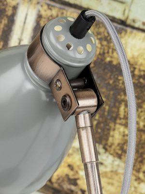 Cette lampe de table grise a un design incliné qui combine rétro et moderne. Convient pour la salle à manger, le bureau, la chambre à coucher ou le salon. Équipée d’une grande douille E27 et résistante à la poussière (IP20). Un ajout élégant pour tout intérieur.