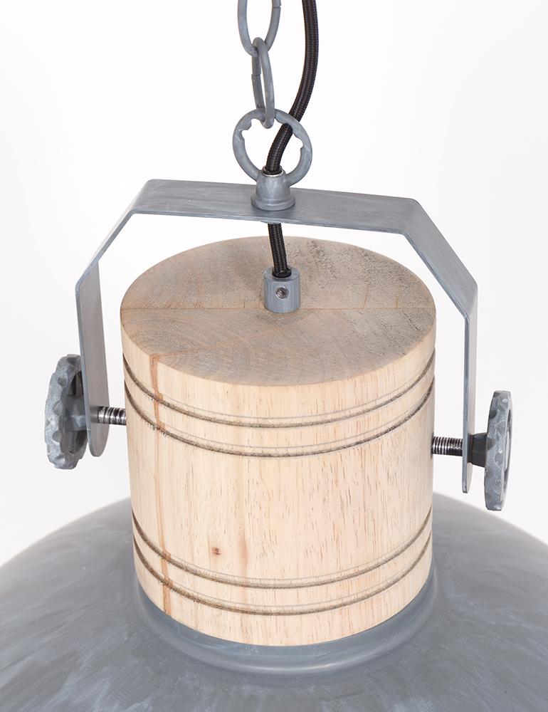 Instaurez une ambiance apaisante dans votre intérieur en optant pour des lampes designs comme cette suspension en bois et en métal. Il s’agit d’un luminaire pour salle à manger, mais vous pouvez aussi l’installer dans d’autres pièces de la maison. Son abat-jour gris est soutenu par une tige en bois et une chaîne de suspension pour la note industrielle.
