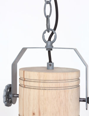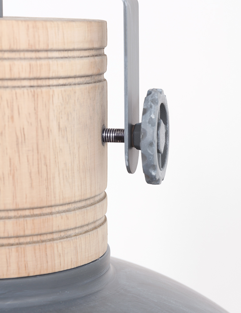 Lampe de table industrielle avec tige en bois Mexlite Gearwood gris