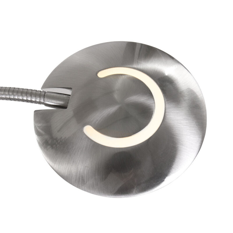 Cette lampe de table de couleur acier de la série Zenith offre flexibilité et style en un. L’abat-jour pivotant et inclinable facilite l’orientation du faisceau lumineux selon vos souhaits. La lampe est équipée d’un module LED de 6 watts avec une luminosité de 700 lumens. La couleur de la lumière est réglable entre 2200 Kelvin (lumière chaude) et 4000 Kelvin (lumière froide). Avec le variateur à pression sur le pied, vous pouvez facilement régler l’intensité lumineuse. La hauteur est réglable jusqu’à 42 cm et la base a un diamètre de 15,5 cm. Le cordon de 165 cm rend cette lampe adaptée à différents espaces. Cette lampe de table de la marque Steinhauer est livrée avec une garantie de 2 ans.