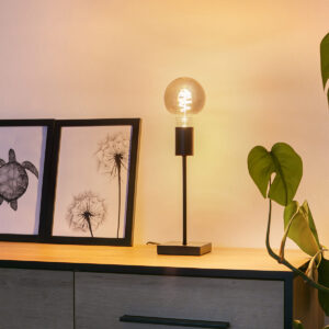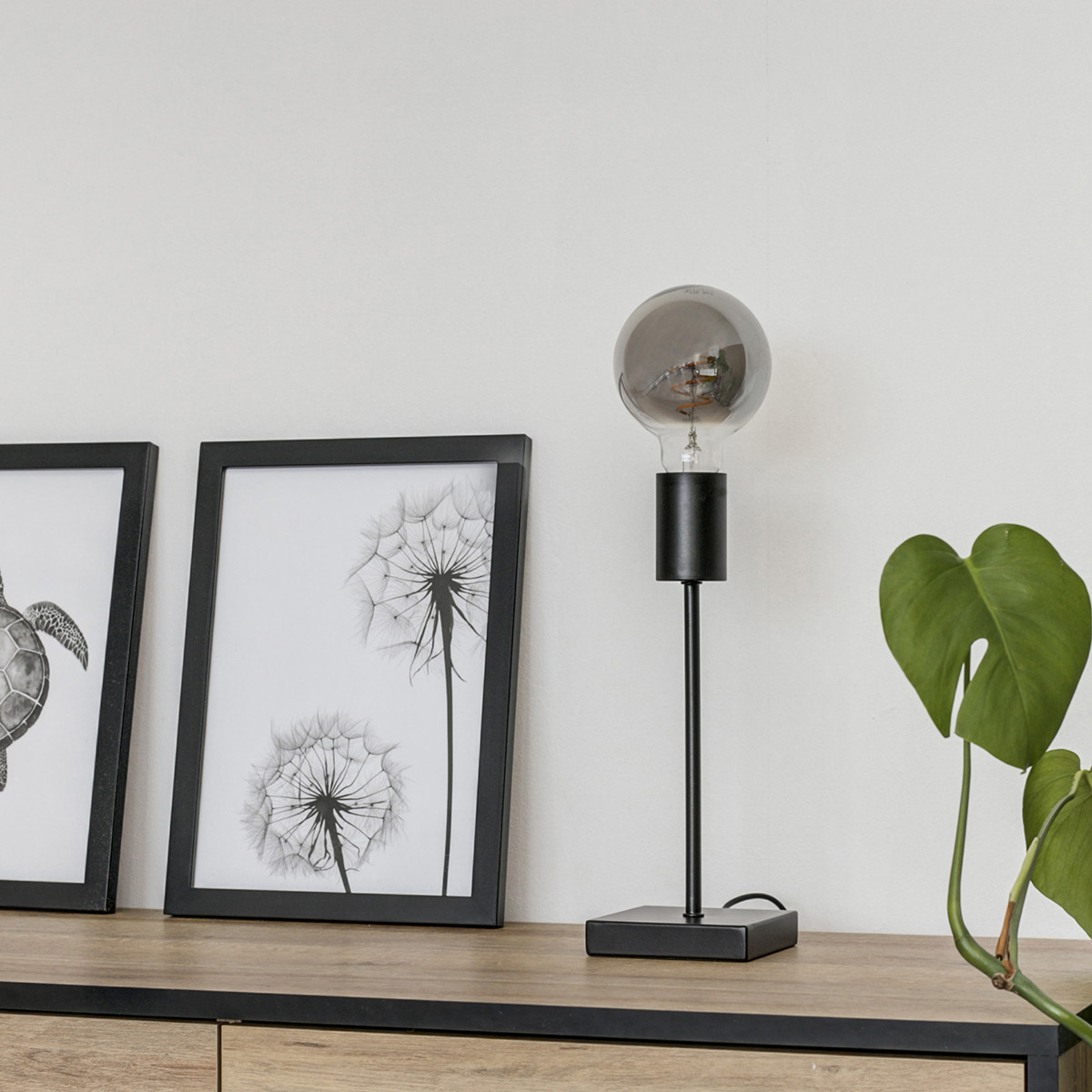 La lampe de table Minimalics noire est équipée d’une douille E27 et convient aux sources lumineuses jusqu’à 40 Watts. La lampe mesure 28 cm de haut et est livrée sans source lumineuse. Avec son design minimaliste, elle s’intègre parfaitement sur des tables de nuit, des bureaux ou des commodes et offre un éclairage d’ambiance.