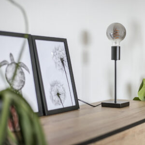 Fabuleux, ce “Minimalics” minimaliste de Mexlite. Élégante, noire mate et robuste, cette lampe de table se démarque. Sur une base carrée se trouve simplement le support avec une douille noire. À toi de lui donner un visage en y mettant une jolie source de lumière avec par exemple des filaments. Tes tables de nuit modernes n’ont jamais été aussi joliment éclairées !