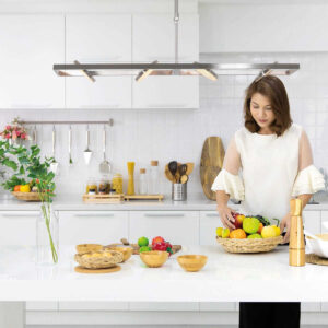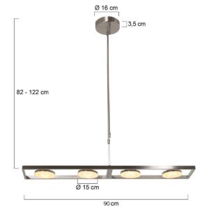 Avec une largeur de 90 cm et quatre sources lumineuses séparées, cette lampe est parfaite pour les tables jusqu’à 180 cm de large. La couleur de la lumière est réglable entre 2200K et 4000K, vous permettant de passer d’une lumière blanche extra chaude à une lumière blanche claire. Les sources lumineuses pivotantes offrent une flexibilité supplémentaire, tandis que la fonction dimmable intégrée garantit un confort d’utilisation optimal. Un choix moderne et polyvalent pour tout intérieur.