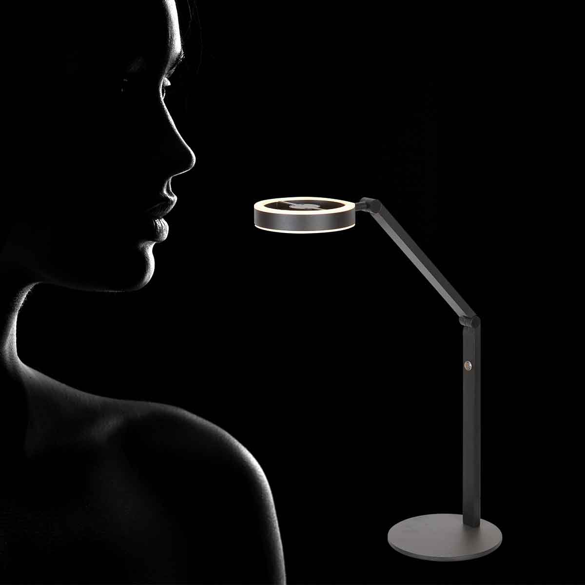 La lampe de table Ringlux de Steinhauer est une lampe moderne et polyvalente qui est idéale pour les espaces de travail et de vie. Avec son design en métal noir élégant et ses dimensions compactes, elle s’intègre facilement sur un bureau, une table de nuit ou une table d’appoint. Le réflecteur rond diffuse une couleur de lumière chaude de 2700K et avec une puissance lumineuse de 1000 lumens, la lampe offre à la fois un éclairage fonctionnel et d’ambiance. Le variateur intégré dans le tube permet d’ajuster facilement l’intensité lumineuse.