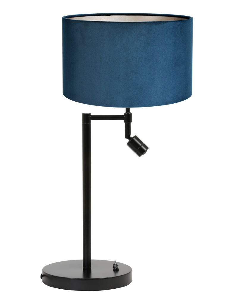 Ben je op zoek naar een moderne tafellamp? Light&Living heeft voor u de “Montana” lamp met een prachtige blauwe fluwelen lampenkap. Het voordeel van deze tafellamp is dat hij een extra leeslamp heeft met verstelbare spot die rechtop staat. De slanke hoeveelheid rust op een schijfvormige basis. De metalen onderdelen van “Montana” zijn zwart. Deze praktische lamp is ook een sfeerlamp die je favoriete leesplek het beste zal verlichten.
