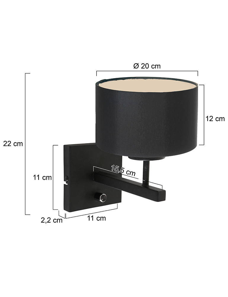 La lampe murale avec abat-jour de la série Stang de Steinhauer offre un éclairage élégant et contemporain. Le cadre en métal noir mat forme un tout harmonieux avec l’abat-jour en lin noir, qui, avec un diamètre de 20 cm et une hauteur de 12 cm, crée une diffusion de lumière subtile et atmosphérique. La lampe murale est équipée d’une douille E27 et convient aux sources de lumière jusqu’à 40 watts.