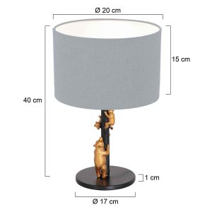 La lampe de table Animaux en or et noir d’Anne Light & Home est un choix tendance pour votre salle à manger, chambre d’enfant ou salon. Cette lampe en métal avec un abat-jour en tissu et un support E27 offre un éclairage élégant et chaleureux. Idéale pour créer une ambiance unique et ludique. Ajoutez une touche de glamour à votre intérieur avec cette magnifique lampe de table.