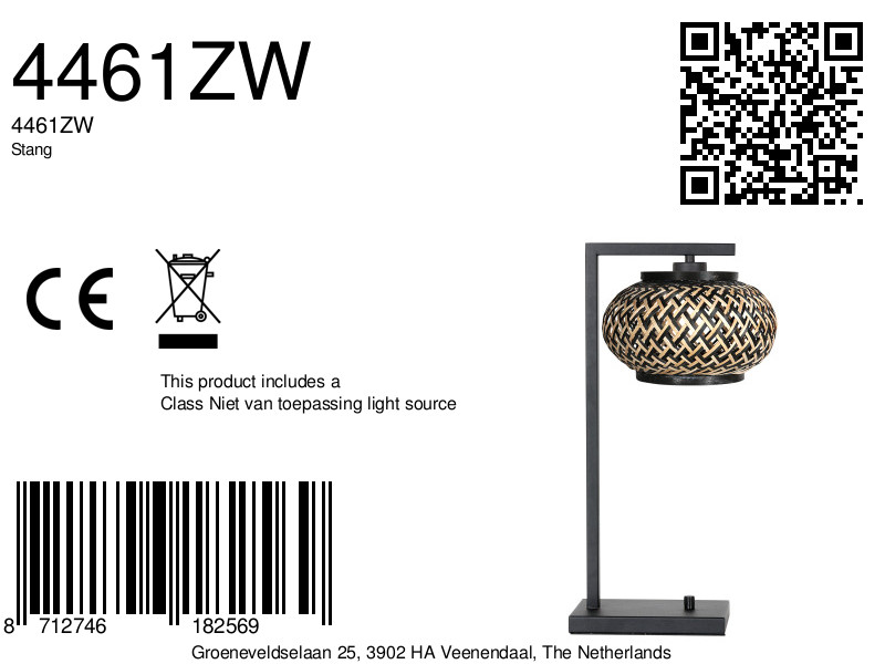 Lampe de table noire avec abat jour en bambou naturel Steinhauer Stang
