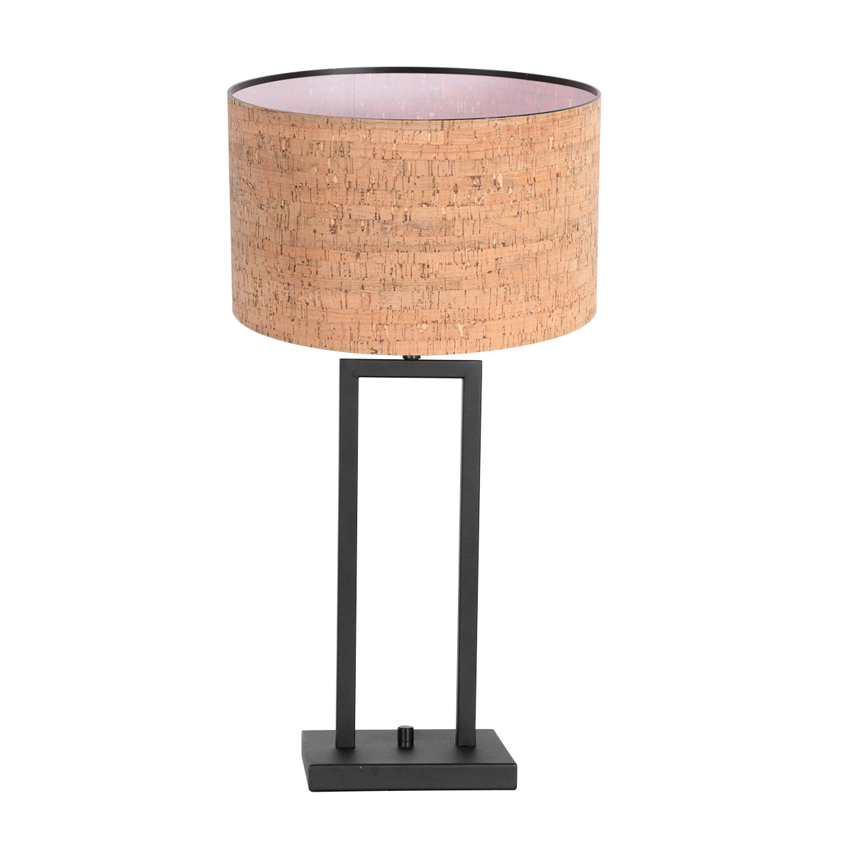Lampe de table noire avec grand abat jour en liège Steinhauer Stang
