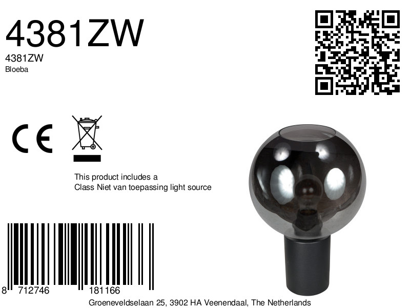 La Bloeba 4381ZW est une lampe de table intemporelle avec un abat-jour généreux de 25 cm de large et 21,9 cm de haut. Le verre fumé fait main diffuse une lumière chaleureuse et présente de subtiles variations de couleur et de texture, lui conférant un aspect unique.
