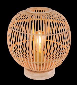 Lampe de table ronde bohème en bambou naturel Globo Hildegard