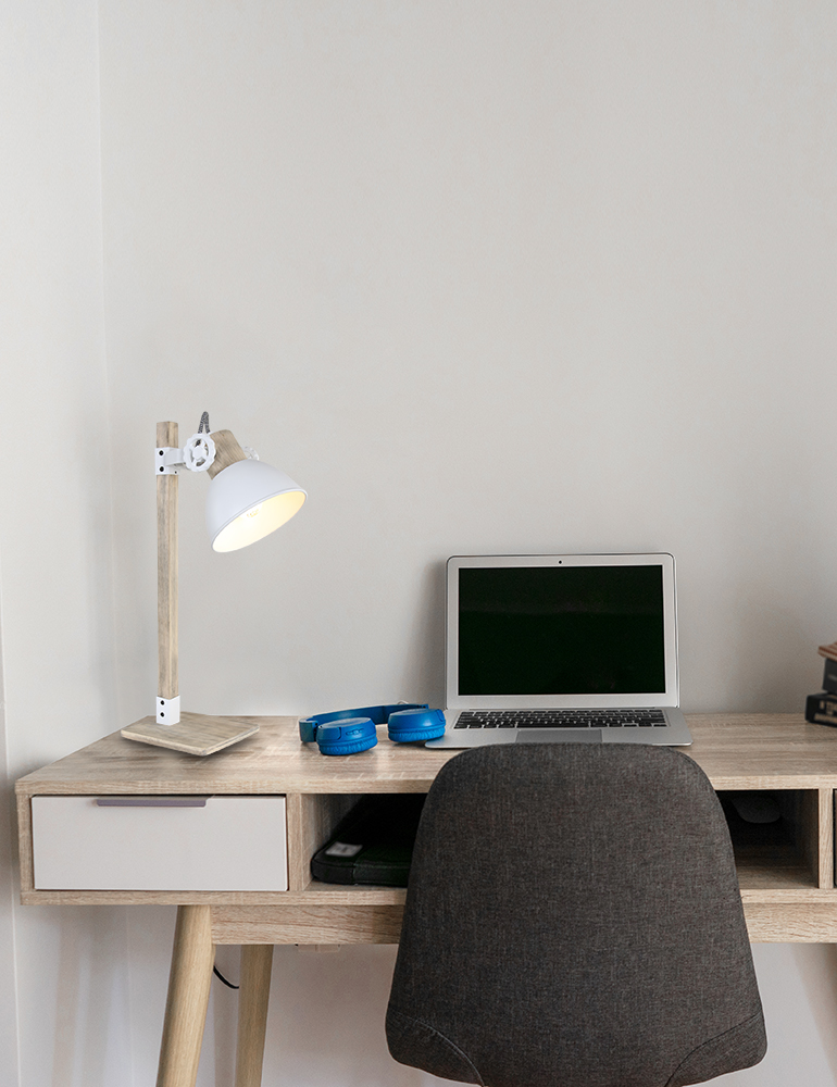 Pour un bureau de style scandinave, comme le reste de la maison, choisissez cette lampe de table en bois clair et en métal. Son design épuré l’aidera à se marier au reste de votre décoration facilement. Ses couleurs apporteront de la gaité et de la convivialité à votre espace. À installer sur un coin de la table, c’est l’allié idéal pour assurer le confort de votre espace de travail.
