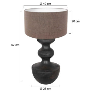 La lampe de table Lyons offre un charme intemporel grâce à son pied en bois brun foncé et son abat-jour en lin brun de 40 cm de diamètre et 20 cm de hauteur. Cette lampe de chevet classique a une hauteur totale de 70 cm, ce qui en fait le choix idéal pour un intérieur rustique. Elle apporte chaleur et élégance à votre salon ou salle à manger et crée une ambiance conviviale et raffinée.