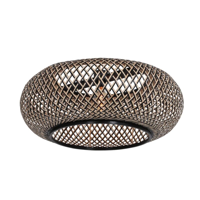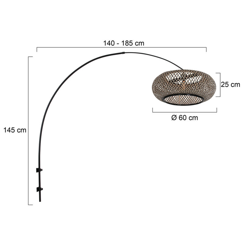 Lampe murale arc noir avec abat-jour rond en bambou Steinhauer Sparkled Light