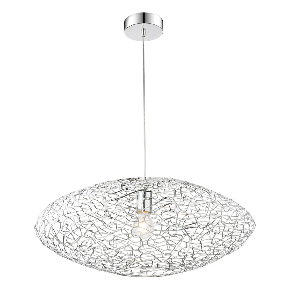 Cette suspension unique avec un grillage en aluminium et une finition chromée transforme chaque espace avec son style distinctif. Le design diffuse la lumière magnifiquement, créant une atmosphère dynamique dans votre espace. Idéal pour des environnements contemporains où une pièce maîtresse est souhaitée.