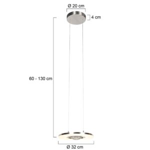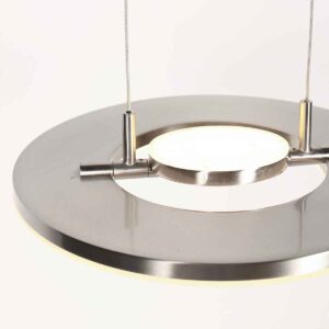 La suspension Soleil de Steinhauer Exclusive apporte une élégance moderne à votre intérieur avec un design en couleur acier épuré. Avec un diamètre de 32 cm et une finition métallique raffinée, cette lampe s’adapte parfaitement au-dessus d’une table à manger, d’un bureau ou d’un îlot de cuisine. L’élément circulaire rotatif innovant crée un effet lumineux ludique, permettant de générer à la fois de la lumière directe et indirecte. La puissance lumineuse de 4000 lumens combinée à la température de couleur chaude de 2700K fait de cette lampe un choix idéal pour divers espaces.
