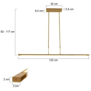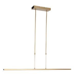 La suspension Zelena dorée de Steinhauer apporte une touche raffinée à votre intérieur. Son design minimaliste associé à un puissant éclairage LED intégré offre à la fois ambiance et fonctionnalité. Grâce à deux uplights (2x 4W, 800 lumens) et un downlight (1x 17W, 1700 lumens), une distribution de lumière chaude et uniforme est créée, idéale pour au-dessus de la table à manger ou dans la cuisine. La lampe est réglable en hauteur de 82 à 117 cm et mesure 122 cm de long, ce qui lui permet de s’intégrer facilement dans différents espaces.