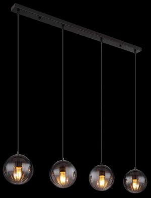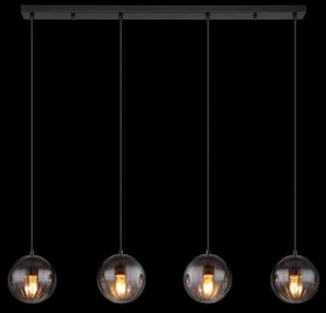 Ce plafonnier mesure 1040 mm de long, 170 mm de large et 1200 mm de haut. Fabriqué en métal noir mat et en verre fumé, c’est un élément d’éclairage élégant pour chaque pièce. Nécessite 4x E27 60W 230V ampoules (non incluses).