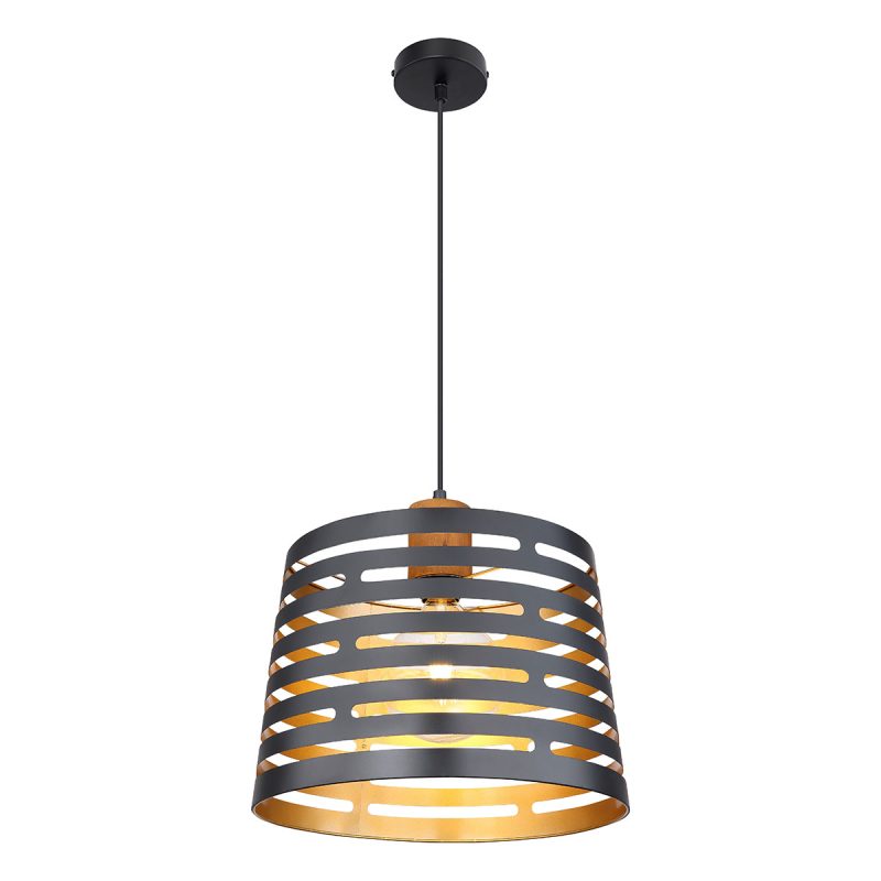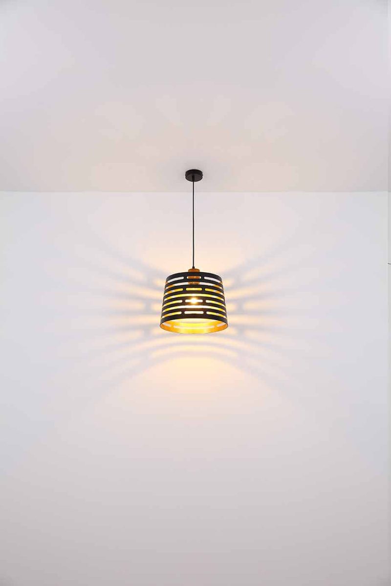 Faites ressortir votre salon avec ce luminaire moderne, parfait pour créer une ambiance unique. La lampe, avec un abat-jour en métal noir et un intérieur doré, a un diamètre de 35 cm et une longueur totale de 1,2 m, ce qui en fait un ajout frappant à tout intérieur. Vous pouvez ajuster l’intensité et la couleur de la lumière vous-même grâce à la douille E27, d’une puissance maximale de 60W. L’utilisation d’ampoules LED est recommandée pour la durabilité et les économies d’énergie. Combinez-la avec d’autres modèles de cette série pour enrichir votre décor.