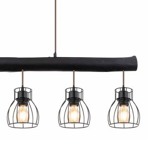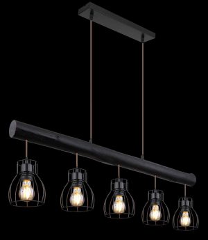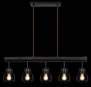 Ce plafonnier de la série Mina est un ajout élégant à votre intérieur. La lampe de 104 cm de long se compose d’une tige en bois teinté noir suspendue au plafond par deux câbles, avec cinq abat-jours en métal noir en mailles. Ceux-ci peuvent être équipés d’ampoules E27 de votre choix, vous permettant de déterminer vous-même la couleur et la luminosité de la lumière. Hauteur réglable jusqu’à 140 cm. À combiner avec d’autres modèles de la même série.