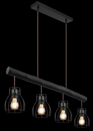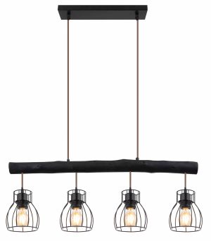 Cette suspension de la série Mina est un ajout élégant à votre intérieur. La lampe de 82,5 cm de long se compose d’une tige en bois teinté noir suspendue au plafond par deux câbles, avec quatre abat-jours en métal noir. Ceux-ci peuvent être équipés d’ampoules E27 de votre choix, vous permettant de déterminer la couleur et la luminosité de la lumière. Hauteur réglable jusqu’à 140 cm. Associez-la à d’autres modèles de la même série.