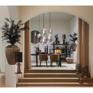 Lampe suspendue rétro grise en verre fumé Light & Living Magdala