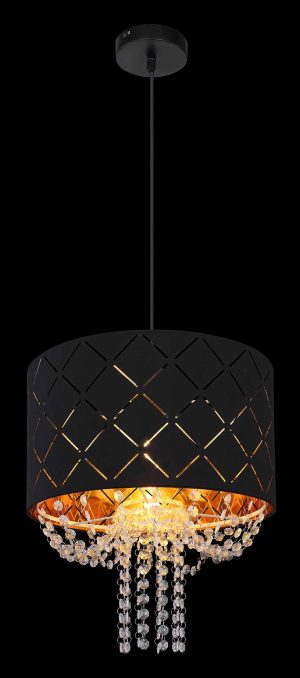 Découvrez ce élégant suspensions avec un extérieur noir et un intérieur doré, orné de chaînes en cristal qui donnent un effet de lustre. Le design moderne est associé à une élégance classique, parfait pour créer une atmosphère unique dans chaque pièce.