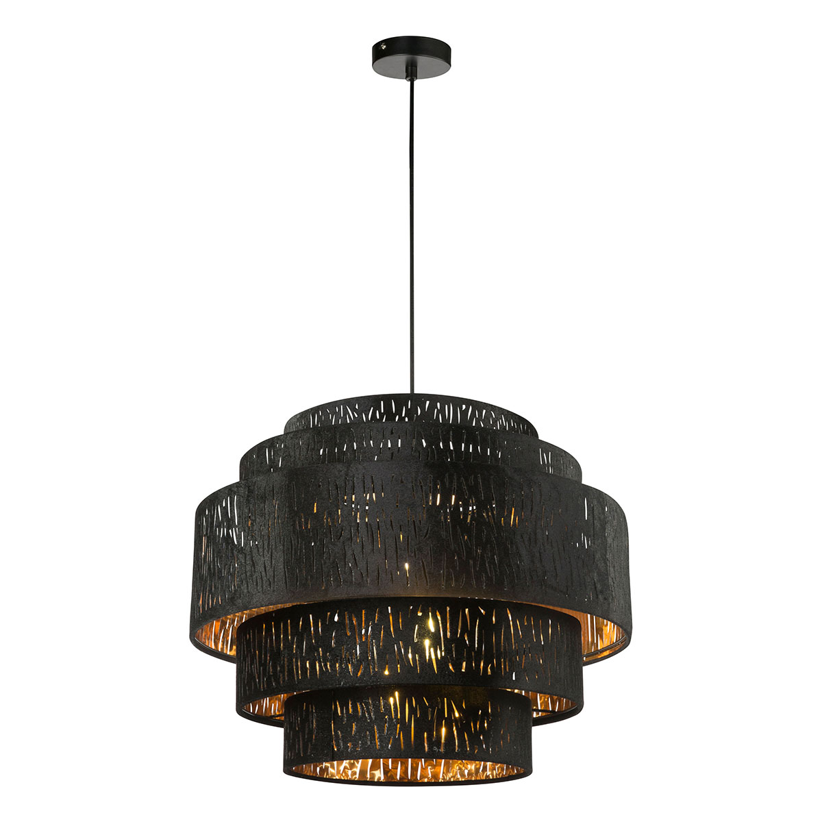 Cette lampe suspendue Tuxon avec un abat-jour en velours de 50 cm et des perforations décoratives est un ajout élégant à tout intérieur. Avec des options d’éclairage variables grâce à la douille E27, cette lampe est idéale au-dessus des tables à manger ou dans les salons.