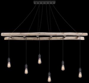 Cette suspension est un véritable accroche-regard. La lampe vintage IRMGARD impressionne avec une échelle en bois suspendue horizontalement dans la pièce, avec des câbles noirs menant aux raccords E27. Vous pouvez installer six ampoules E27 de votre choix (max. 60 watts par ampoule). Les ampoules LED sont recommandées pour leur économie d’énergie et leur longue durée de vie.