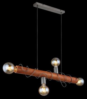Cette lampe suspendue rustique de la série Alice, fixée à deux câbles, possède une élégante barre en bois brun de 70×20 cm. Équipée de quatre raccords E27, dont deux aux extrémités et deux orientés pour un éclairage direct, vous pouvez ajuster la couleur et la luminosité de la lumière selon vos souhaits. La lampe est enroulée de fil métallique noir, ce qui lui confère un effet unique.