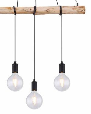 Cette impressionnante suspension en bois avec des câbles noirs tendance est un élément moderne dans chaque maison. Utilisez cette lampe dans le salon, comme éclairage convivial au-dessus de votre table à manger, ou comme accent au-dessus de la table de cuisine. Compatible avec des ampoules E27 d’une puissance maximale de 4×60 watts. La visibilité des ampoules offre la possibilité d’utiliser des ampoules décoratives. Une ampoule LED est recommandée pour une durabilité accrue.