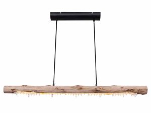 Cette lampe suspendue allie des styles modernes et classiques. Aux câbles noirs suspendus se trouve une poutre en bois naturel, décorée de cristaux acryliques lumineux qui font sensation dans votre pièce. L’ampoule LED de 15 watts fournie offre jusqu’à 980 lumens de lumière avec une couleur de lumière chaude de 3000 Kelvin. Idéale pour votre salon et salle à manger.