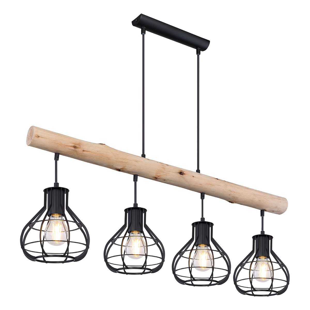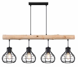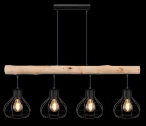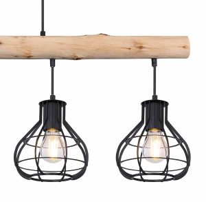 Cette impressionnante suspension en bois avec des abat-jours en métal tendance de la série CLASTRA est un véritable accroche-regard moderne. Idéale pour une utilisation dans le salon ou au-dessus de la table à manger. Les lampes, compatibles avec E27, sont visibles et permettent d’utiliser des lampes décoratives. Il est recommandé d’opter pour des LED pour plus de durabilité.