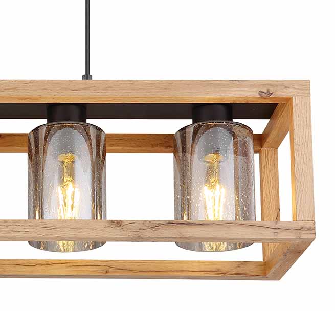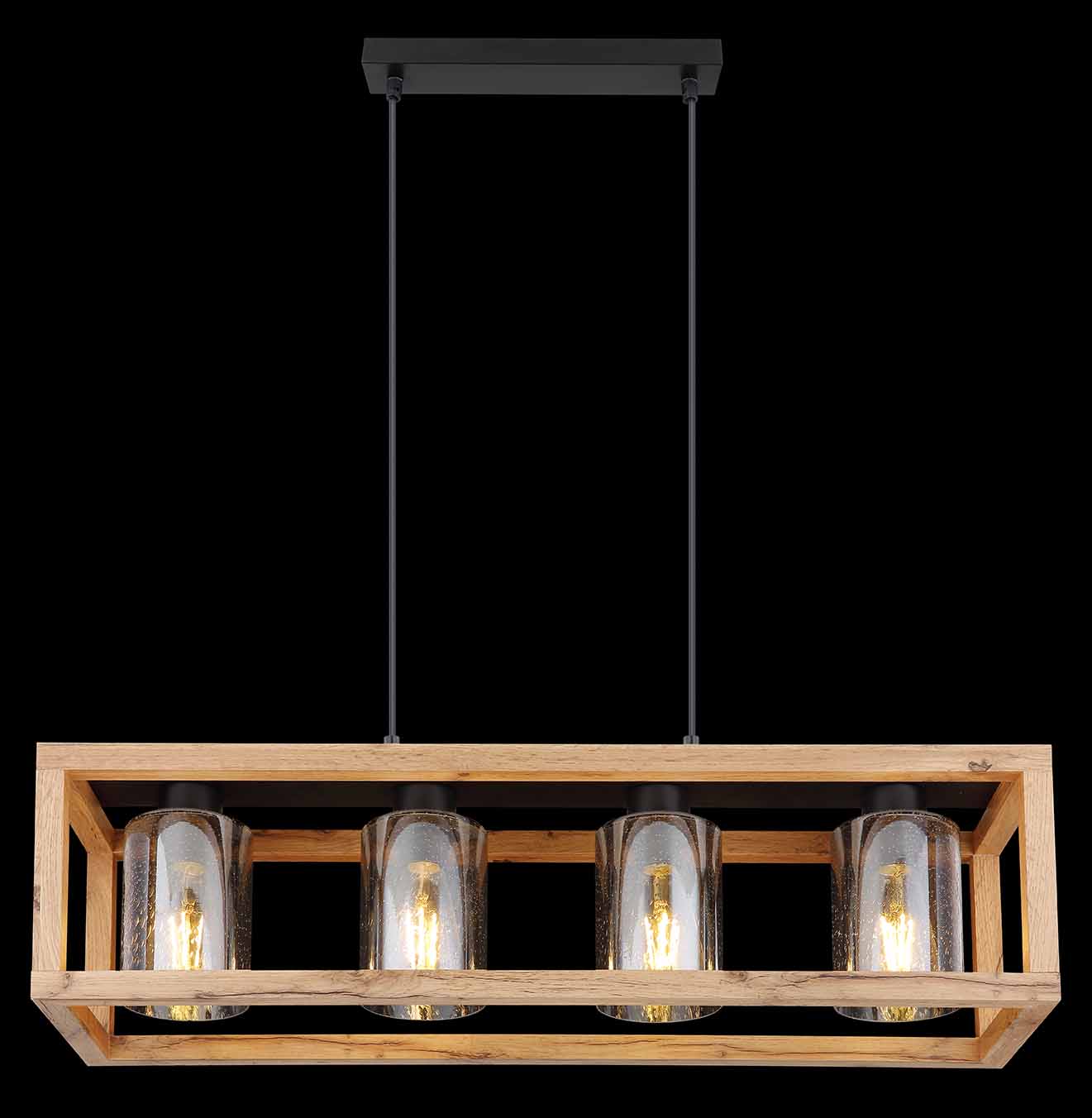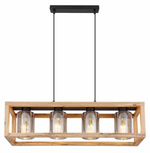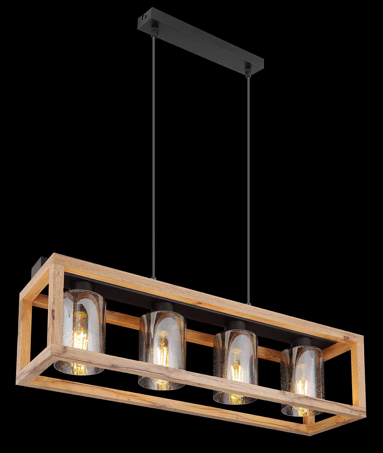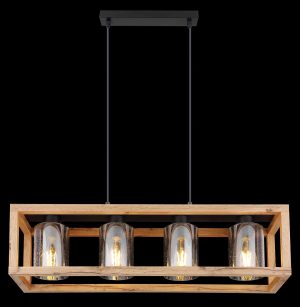 Ce luminaire suspendu de la série Pettey (75×20 cm) apporte une touche élégante à votre intérieur. Le luminaire est constitué d’un cadre en MDF avec quatre verres fumés et est suspendu à deux câbles noirs. Ajustez les ampoules E27 pour créer la couleur et la luminosité de lumière souhaitées. La hauteur est réglable jusqu’à 120 cm. Associez-le à d’autres modèles de la série pour un look complet.