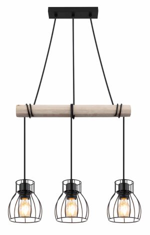Cette suspension de la série Mina s’inspire de la merveilleuse combinaison de matériaux en bois et en métal. Trois câbles noirs, enroulés sur un tronc en bois, descendent d’un support de plafond, chacun avec une connexion E27 et un écran en maille en métal. Avec la prise E27, vous pouvez déterminer vous-même la couleur et l’intensité de la lumière jusqu’à une puissance maximale de 40 watts. En raison de leur longue durée de vie et de leur économie d’énergie, nous recommandons des ampoules LED.