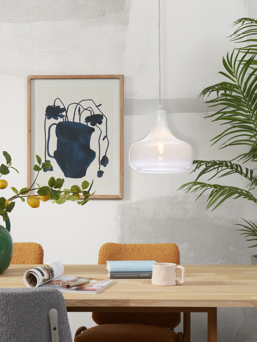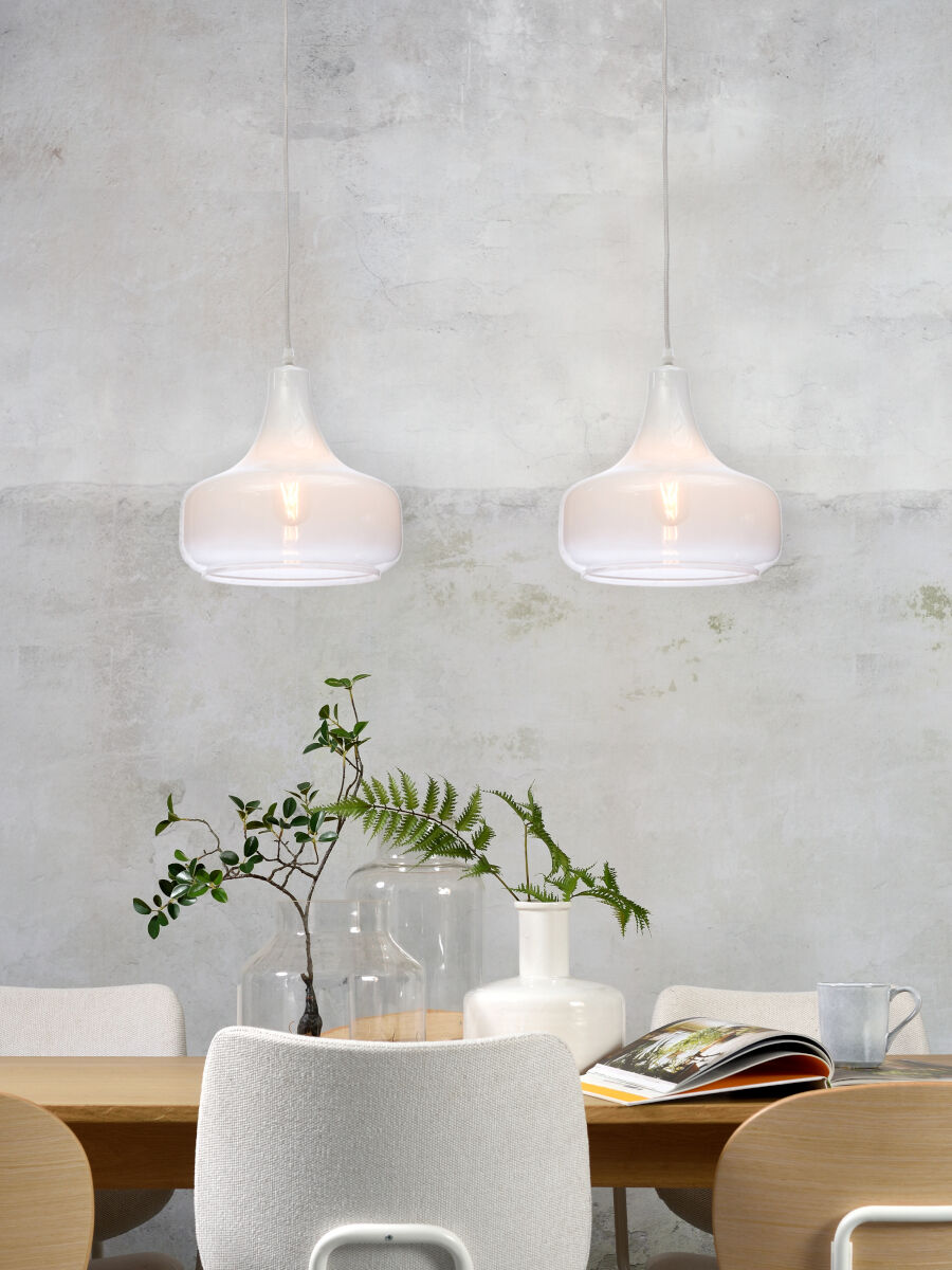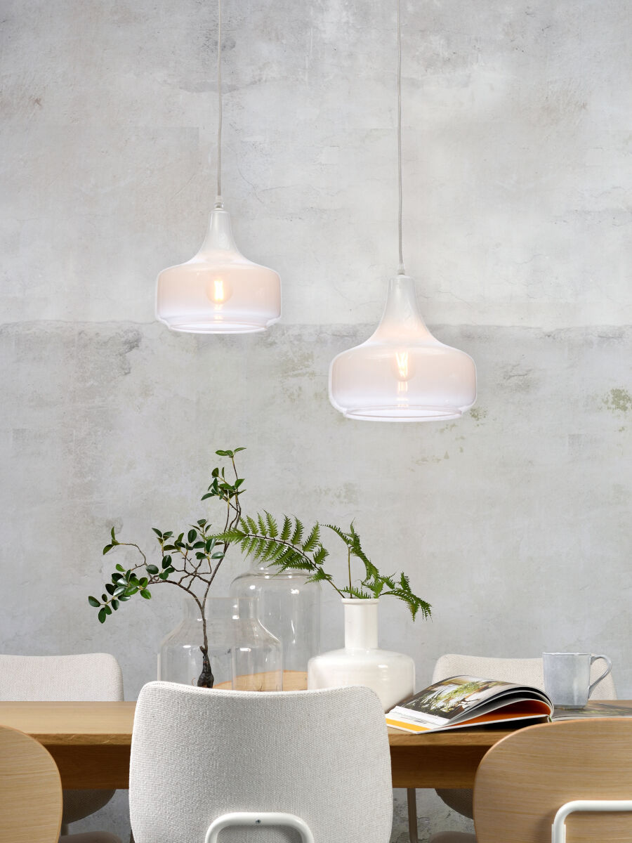 Suspension scandinave blanc-verre métal, It’s About RoMi Reykjavik. Idéale pour la salle à manger, le bureau (à domicile), la chambre ou le salon. Équipée d’un culot E27 et protégée contre la poussière (IP20). Ampoule non fournie. Ajoutez une touche moderne à votre intérieur avec cette lampe élégante.