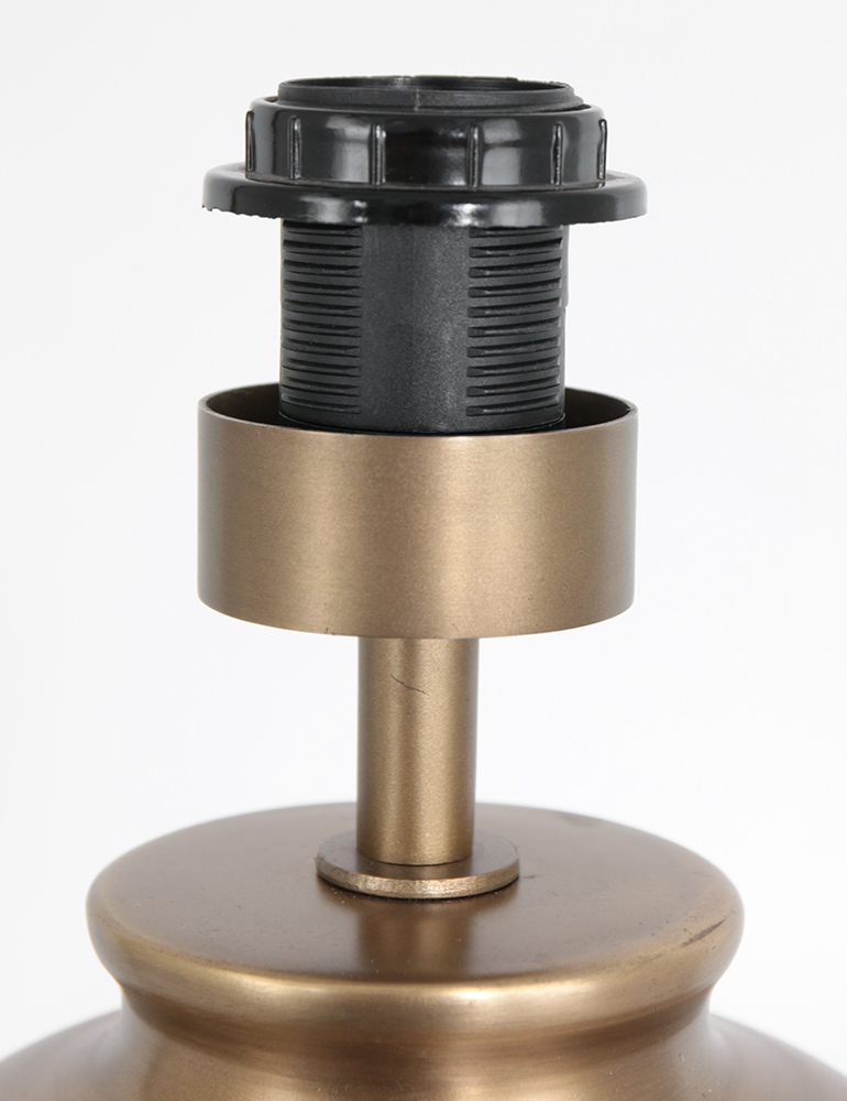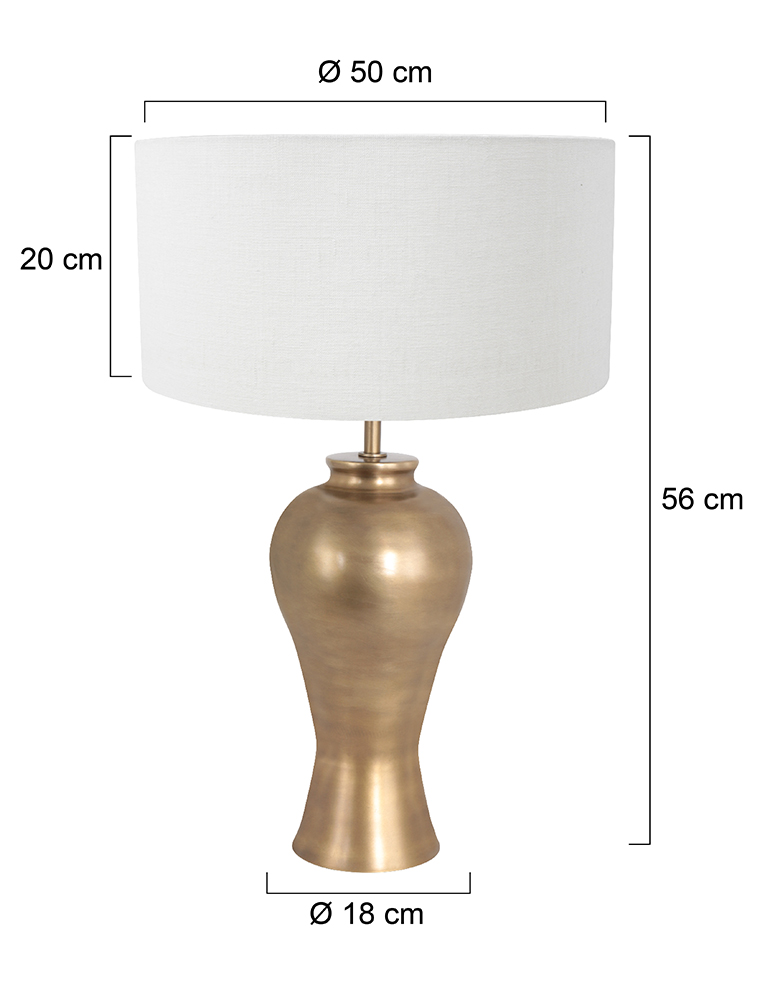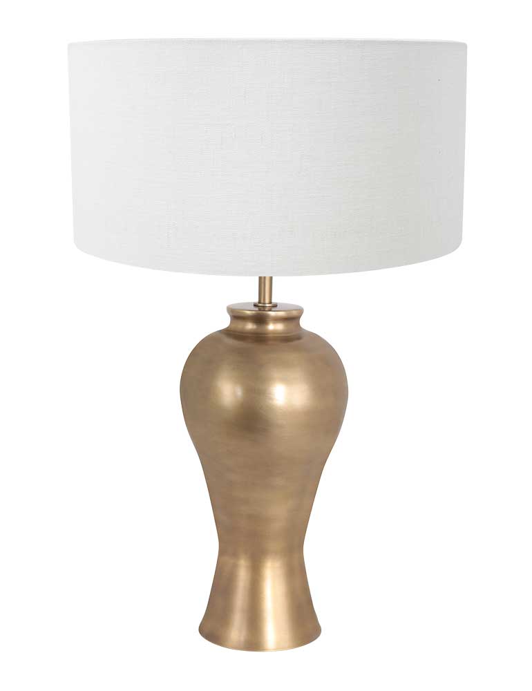 La lampe de table en forme de vase en bronze Brass est un magnifique mélange de design classique et de modernité raffinée. Le cadre en bronze chaud dégage du luxe et est accentué par un abat-jour en lin blanc, qui permet une diffusion douce et diffuse de la lumière. Grâce à la douille E27, la lampe est compatible avec diverses sources lumineuses jusqu’à 40 watts.