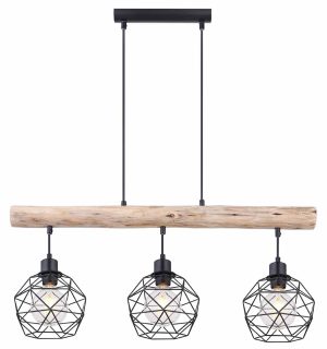 Cette impressionnante suspension en bois avec des abat-jours en métal tendance est un élément moderne accrocheur pour tout salon. Utilisez Theodor au-dessus de votre table de cuisine ou comme éclairage d’ambiance dans votre coin repas. Compatible avec des ampoules E27 d’une puissance maximale de 60 watts dans le luminaire à trois lampes. La lampe combine les matériaux de manière unique et crée de magnifiques effets de lumière dans un style classique de maison de campagne, parfait pour toute situation de vie.